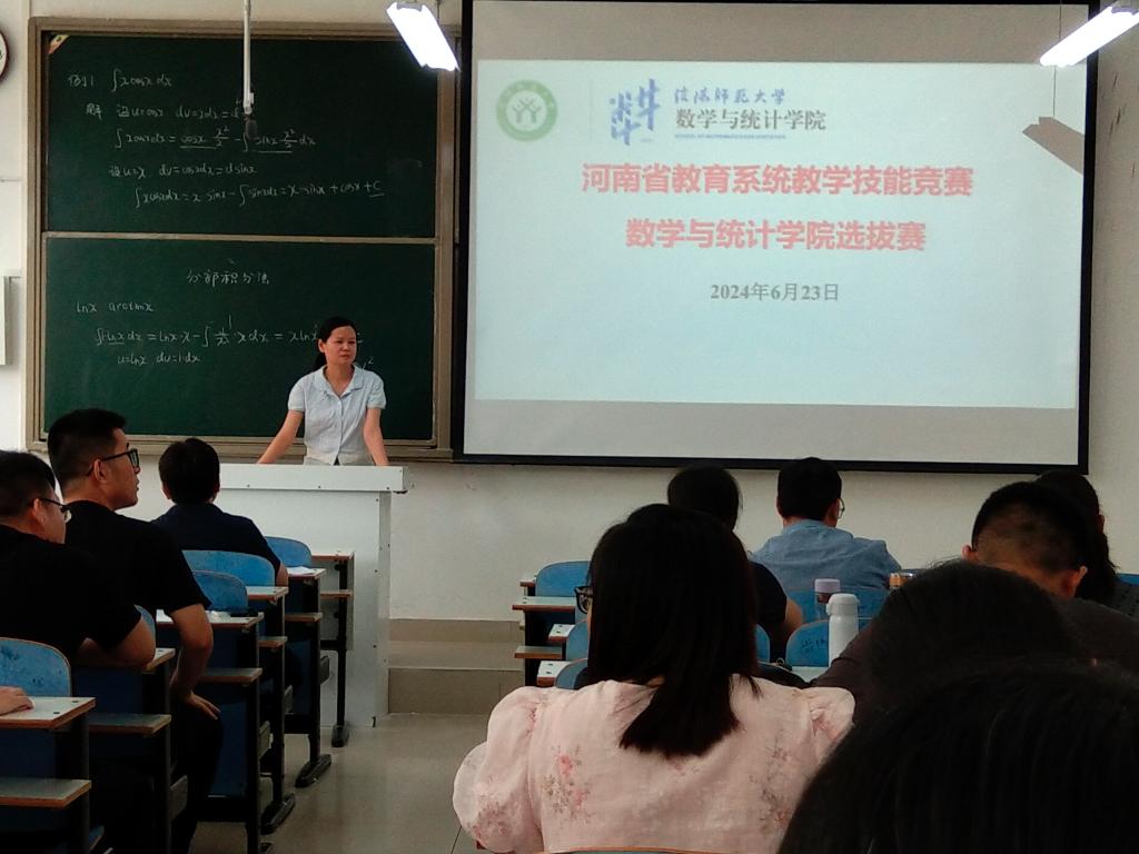 为提升加勒逼 青年教师教学技能,进一步提高教学质量,实现“以赛代练”的目的,6月23日下午,加勒逼 在数学楼301教室举行了青年教师教学技能竞赛暨2024年度河南省教育系统教学技能竞赛选拔赛。11名优秀青年教师参赛,副院长李连兵主持竞赛,各基层教学组织负责人及具有丰富教学经验的教师共同担任专家评委。