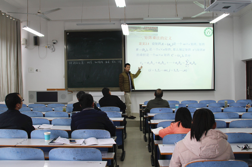 此次汇报课由周学勇和秦金华老师主持,由何佰英、刘庆升等十一名新入职教师主讲,并由其指导老师进行点评。孙兰银老师汇报课题目是“矩阵的乘法运算”,采用黑板主讲、多媒体辅助的形式,在教学中有效地使用了多媒体教学,增加了课堂容量,提升了课堂氛围,真正做到了服务于教学。刘庆升老师选取拉格朗日定理进行详细讲解。他首先引入已学知识点罗尔定理,帮助学生理解新知识,随后结合黑板板书,利用图文结合等教学方法层层递进,深入解读了拉格朗日定理内容。全体与会教师认真聆听了汇报课,并就此次汇报课进行了热烈讨论,互相交流了自己课堂上存在的问题以及改进措施。指导老师对此次新入职教师汇报课进行点评,对新入职教师的教学能力表示肯定,多数老师教学目标明确,在选课内容及教学方法上勇于尝试,敢于创新,体现了青年教师的朝气和进取心。同时各位指导老师也提出新入职教师讲课过程中存在的语言严谨性、板书规范性、PPT准确性等问题,希望新入职教师能够反思自己教学上的问题并加以改进。
