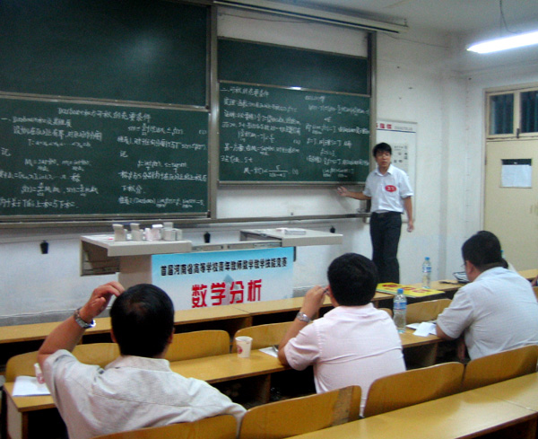 首届河南省高校青年教师数学教学技能竞赛由河南省教育厅主办,分初赛、复赛和决赛三个阶段进行,历时3个多月。决赛评委由河南省数学教学指导委员会成员和部分本科高校数学学院院长组成。经过激烈角逐,最终三个课程组共评出一等奖13名、二等奖27名、三等奖39名、优秀奖26名。
