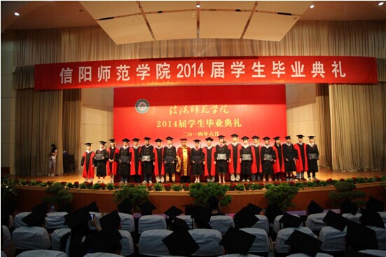 典礼在庄严雄浑的国歌声中拉开帷幕。首先,宋新宇教授代表数学学院学位委员会宣读信阳师范学院关于授予2014届毕业生学士学位的决定和获得学士学位的毕业生名单;接着,胡余旺院长为毕业生致词。他对2014届毕业生顺利完成学业表示真诚的祝贺、对为同学们的成长付出辛勤劳动的全体教职工以及支持同学们顺利完成学业的家长和朋友表示衷心的感谢。在为毕业生送上祝福的同时,胡院长还提出五点希望:一是要像理解极限一样理解人生。面对变数、挫折等动态实际,要把静态理想作为终极目标,不断调整自己,把人生最高境界作为最终理想,享受酸甜苦辣;二是要像理解相关性一样理解同事。在工作中待人处事要真心实意,言行一致;三是要像理解最值一样理解父母。不忘感恩,多关心父母,用行动来报答他们的养育和教导之恩;四是要像理解线性空间一样理解社会关系。学会处理好人际关系,保持理性思维,兼收并蓄,海纳百川;五是要诚实守信,脚踏实地,勤劳苦干,一步一个脚印,迈向成功。最后,胡院长深情地告诉同学们,母校永远是他们的家,遇到困难时就回家,让母校帮助排忧解难;感悟成功时就回家,与母校共喜同贺。胡院长情真意切的叮咛获得了同学们阵阵热烈的掌声。随后,2014届毕业生代表廖玉锋、在校学生代表李治远先后进行发言。