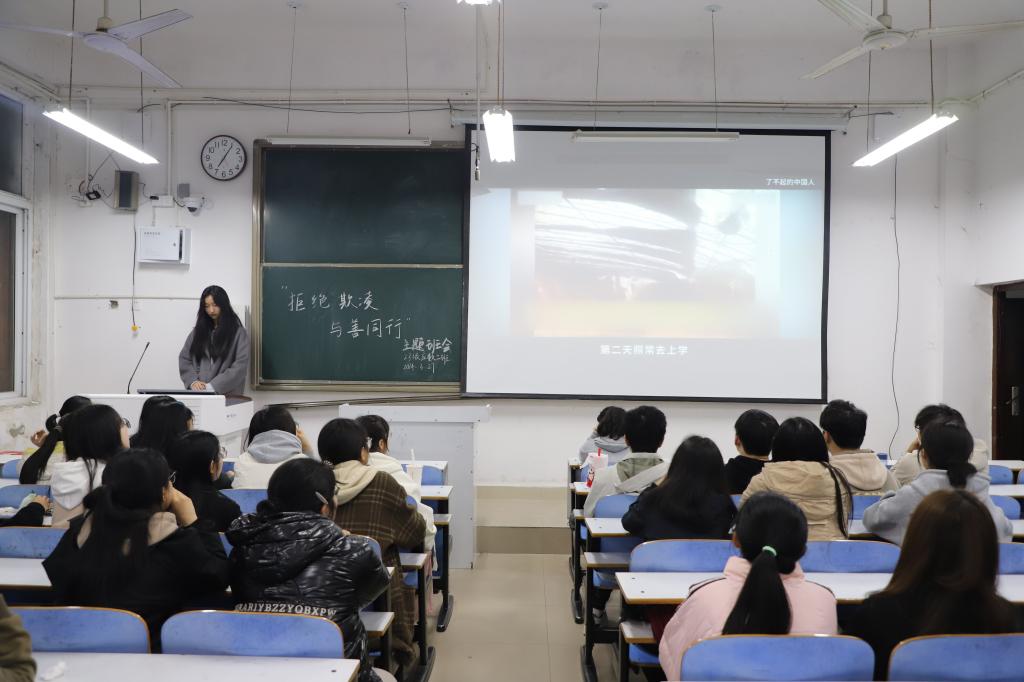 活动中,组织者用生动易懂的语言讲解了什么是校园霸凌,有哪些常见形式和危害,他们结合当前校园霸凌的社会热点话题,以案释法、以理育人。随后他们讲解了面对校园霸凌应该怎么做,告诉同学们受到威胁与暴力时,要第一时间向老师和家长寻求帮助,同时勉励同学们要尊法、学法、守法、用法,从当下做起,从自我做起,远离暴力,一心学习, 心怀阳光,杜绝欺凌行为。