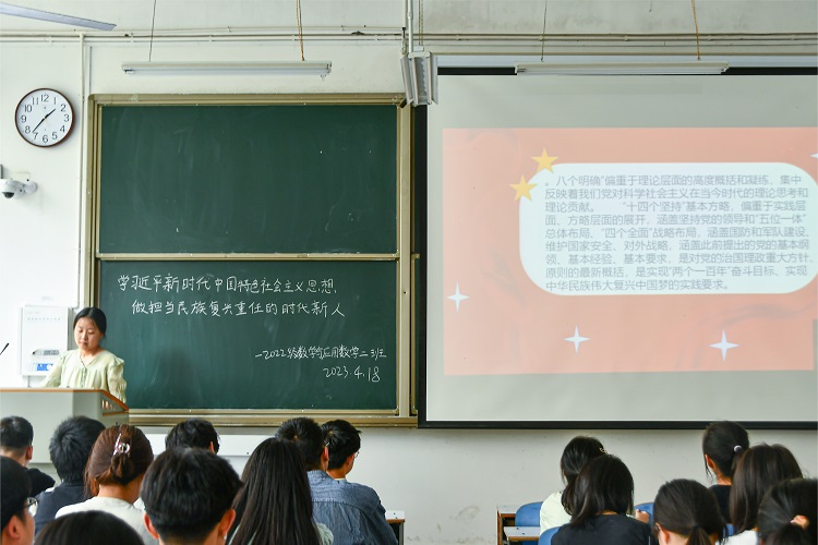 此次团课以班级为单位开展,团课开始前,班长说明团课记律。活动中,各班团支书领学了习近平总书记重要讲话精神,新时代大学生要爱党爱国,厚植家国情怀;要志存高远,胸怀国之大者;要攻坚克难,锤炼过硬本领。21级统计班团支书张新雨讲到,中国青年如何成长为堪当民族复兴重任的时代新人,关键是准确把握新时代奋斗目标和前行方向,要立足新时代、拥抱新时代,在实现第二个百年奋斗目标、建设社会主义现代化强国的新征程上努力拼搏、奋勇争先,用青春奋斗汇聚起推动时代前行的磅礴力量。