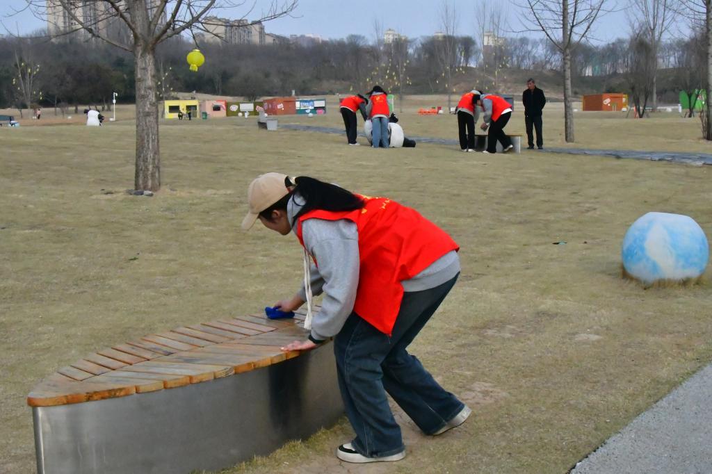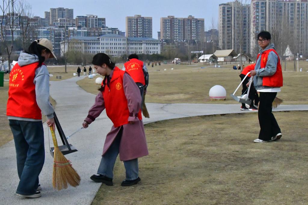 学生会成员踊跃参加本次活动,积极践行志愿者精神,投身社会服务,与文明同行,与绿色相伴。青年志愿服务队利用课余时间,前往信阳青年营地清理草坪垃圾、清洁公共座椅、清扫路面落叶,为建设文明信阳添砖加瓦。同时,志愿者们精心制作了“防溺水”“安全用电”“消费维权”等公益宣传单,向游玩的群众、孩子发放,进一步提高人们的安全防范意识,为生态环保、服务基层贡献青春力量。
