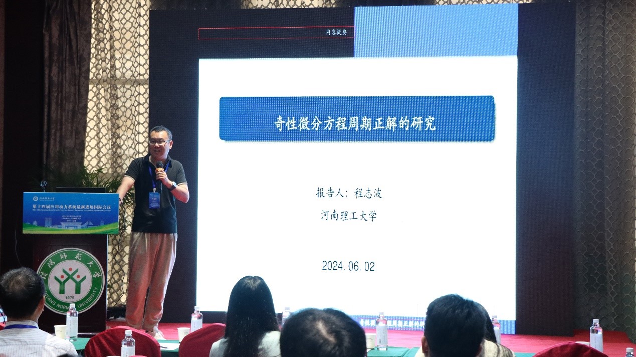 河南理工大学的程志波,做了题目为《奇性微分方程周期解的研究》的报告。