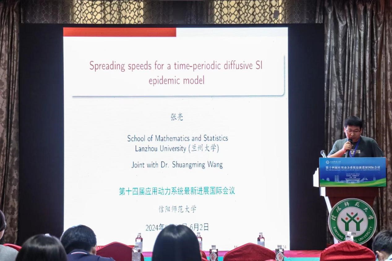 6月2日上午,兰州大学的张亮,做了题目为《Spreading speeds for a time-periodic diffusive SI epidemic model》的报告。