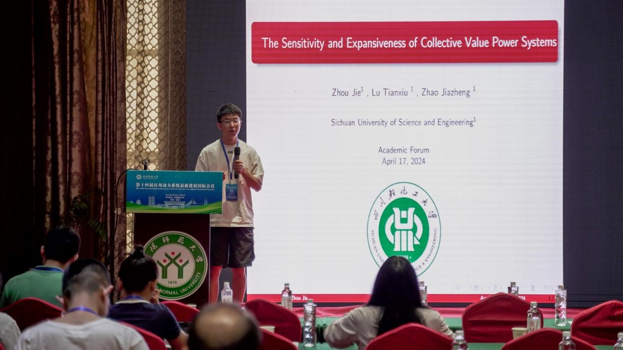 四川轻化工大学的周界,做了题目为《 The expansivity and sensitivity of the set-valued discrete dynamical systems》的报告。