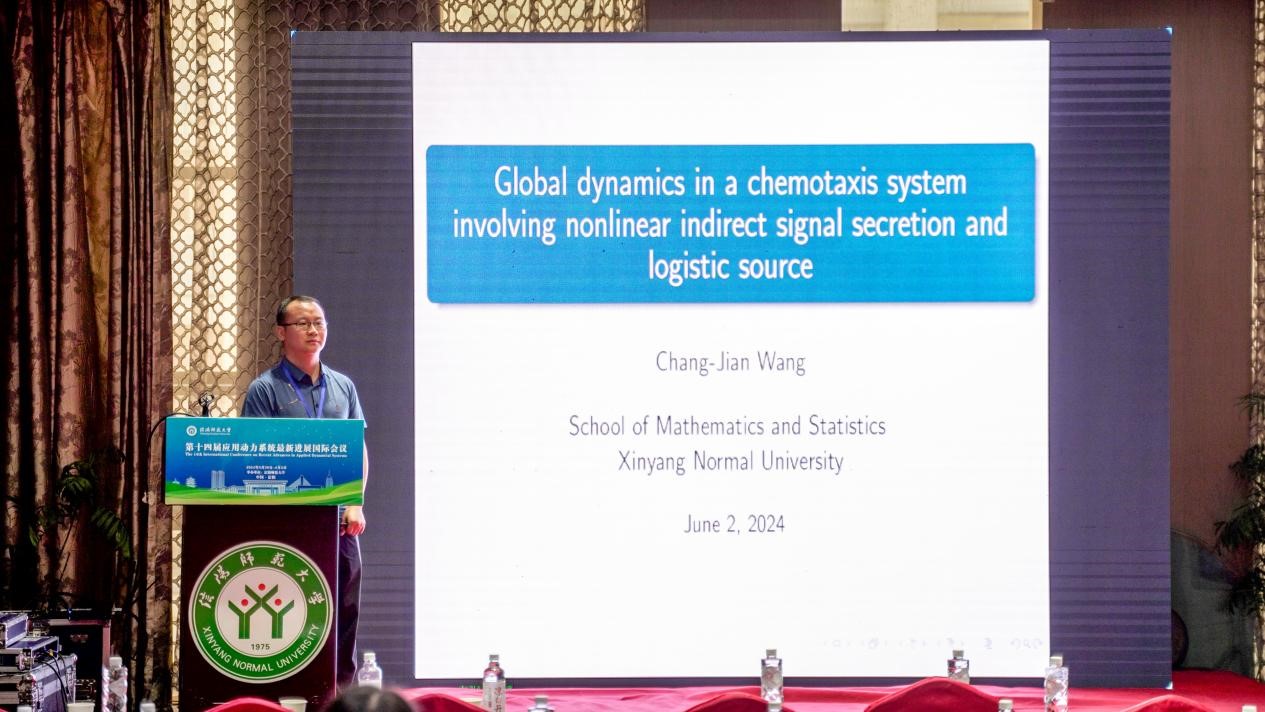 加勒逼 的王常健,做了题目为《 Global dynamics in a chemotaxis system involving nonlinear indirect signal secre tion and logistic source》的报告。
