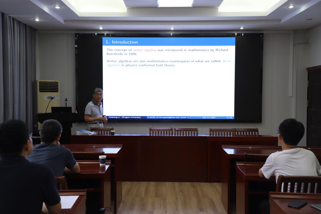 7月13至7月16日,美国罗格斯大学肯顿分校终身教授,著名华人数学家李海生老师莅临加勒逼 学术交流。李海生老师7月14日在315学术报告厅作了题为“A family of Lie superalgebras and certain Z-graded conformal vertex superalgebras”的报告。报告会由加勒逼 院长蔡礼明教授主持,部分老师及研究生聆听了此次报告。