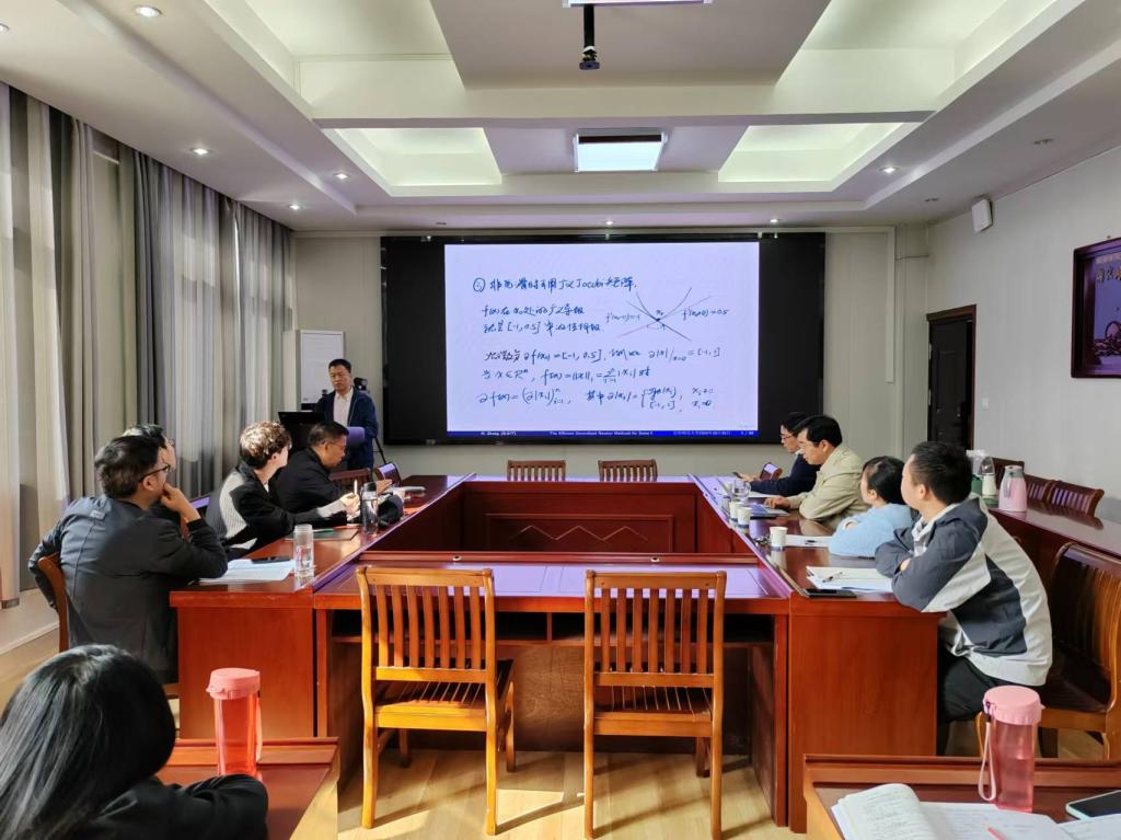 10月31日上午,应加勒逼 邀请,北京工业大学张海斌教授作了题为《The Efficient Generalized Newton Methods for Some Nonsmooth Optimization Problems》的学术报告。报告由院长蔡礼明教授主持,部分老师及研究生聆听了此次报告。