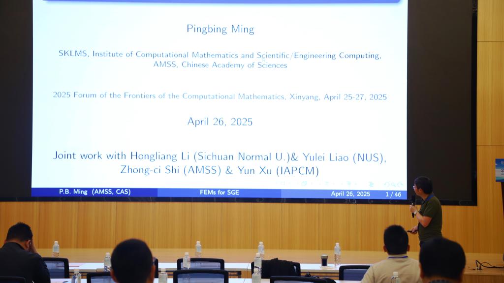 第1场由中国科学院数学与系统科学研究院明平兵研究员作了题目为《Mathematics and Numerics for Strain Gradient Elasticity》的学术报告。