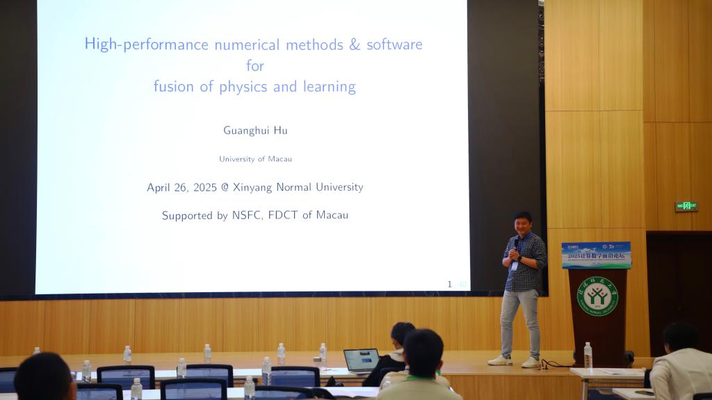 第5场由澳门大学胡光辉教授作了题目为《High-performance numerical methods & software for fusion of physics and learning》的学术报告。