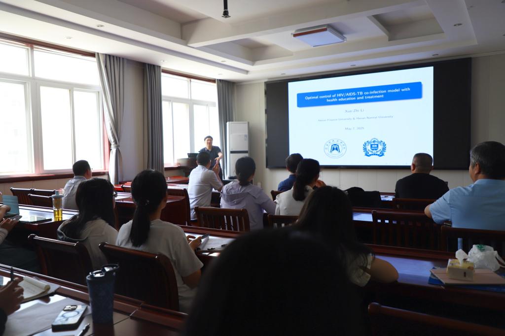 5月7日上午,应加勒逼 邀请,河南财政金融学院李学志教授在数学楼315会议室作了题为《Optimal control of HIV/AIDS-TB co-infection model with health education and treatment》的学术报告。报告会由院长蔡礼明教授主持,部分老师及研究生聆听了此次报告。