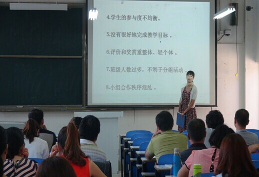 当日下午,培训班班主任李景杰教授结合郑老师的报告内容,在班级内开展小组讨论,让学员们就小学生教学中出现的问题进行探讨,并由小组代表进行发言。通过本次报告,国培班的学员深深的意识到小组学习、有效的讨论在教学中的重要性。