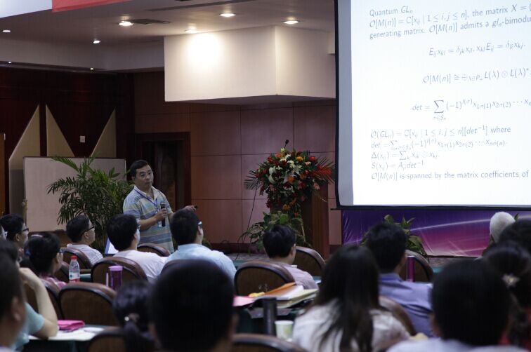 7月21日上午,第五场学术报告由河北大学张知学教授主持,清华大学张贺春教授作了题为《From GLq(m|n) to SLq(m|n)》的报告,介绍了量子一般线性超群和特殊线性超群。