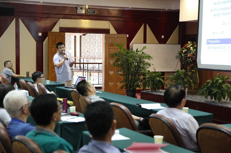 第八场学术报告由中科院数学与系统科学研究院徐晓平教授主持,河南大学刘根强作了题为《Irreducible Wd and AWd-modules》的报告。