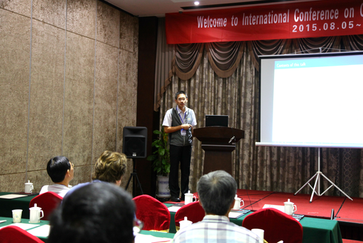 8月5日上午,第一场学术报告由浙江大学沈一兵教授主持。长江学者、北京大学朱小华教授作了题为《Properness of F-functionals》的报告,他证明了在任意锥凯勒-爱因斯坦流形上对F-泛函的适定性,并据此给出了锥凯勒-爱因斯坦度量中连续性方法的开性的另一个证明。