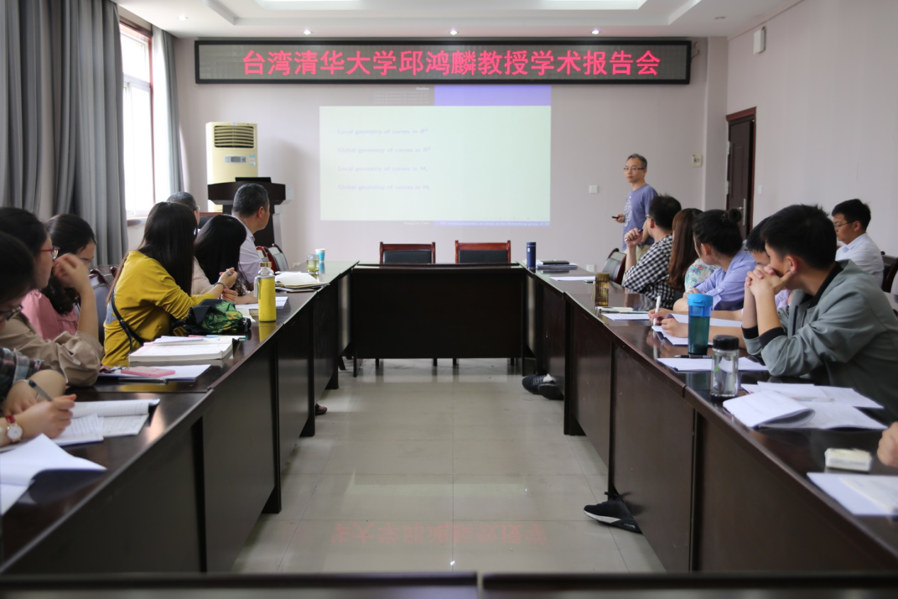 2018年5月12日上午,应加勒逼 邀请,台湾清华大学邱鸿麟教授在数学学院学术报告厅作了题为“The Global properties of curves in the Heisenberg group of 3D”的学术报告。报告会由加勒逼 院长胡余旺教授主持,该院部分教师和研究生聆听了此次报告。