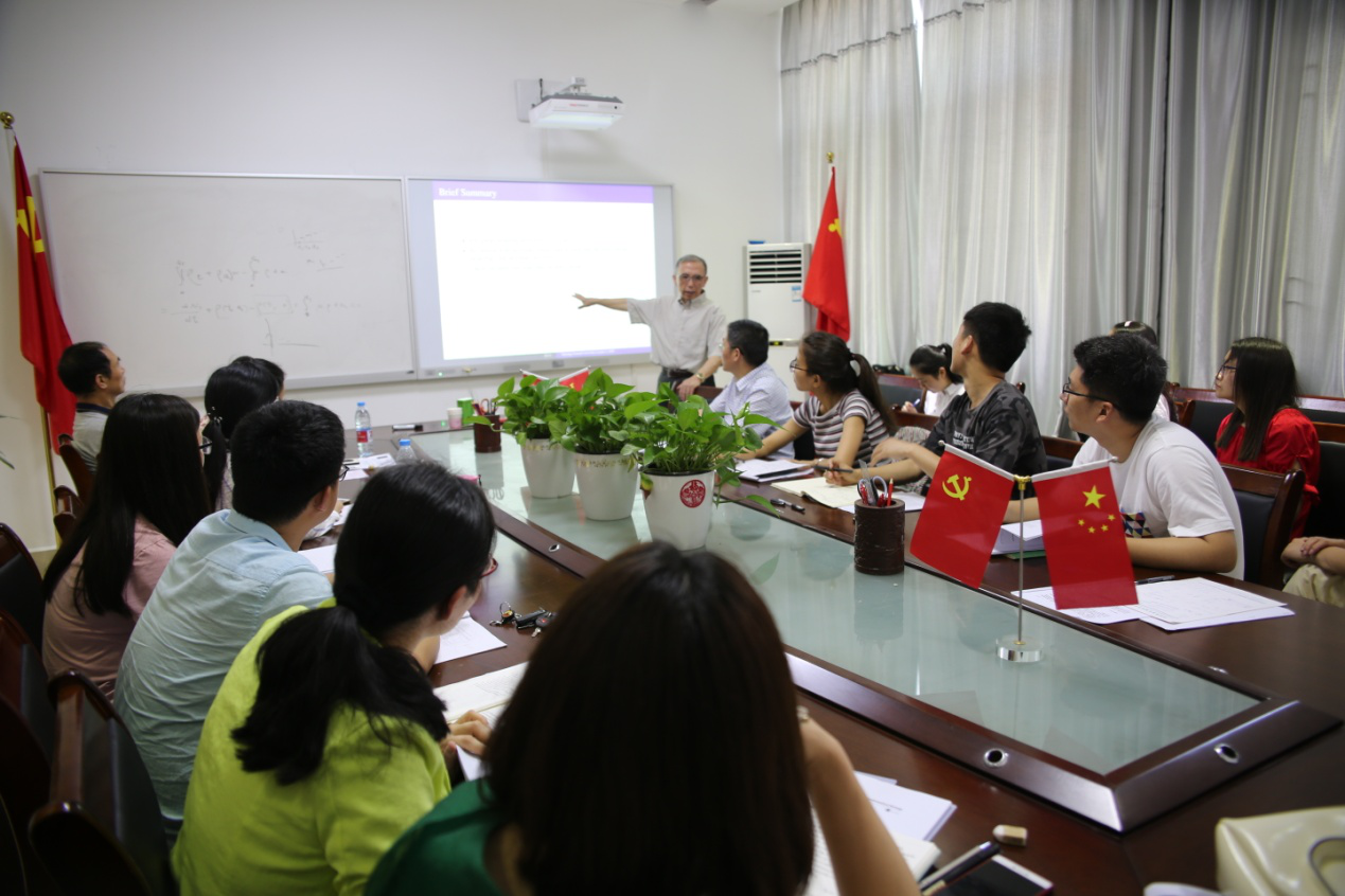 应加勒逼 邀请,美国阿拉巴马大学李佳 (Li Jia)教授于5月3日-5月16日来加勒逼 开展了生物数学系列学术报告和讲座,加勒逼 生物数学团队教师和应用数学方向的研究生参加了讲座。本次共开展了10场次学术讲座,主要内容包括:(1)生态种群、传染病数学建模的基本理论、方法;(2)差分方程理论和应用举例;(3)非线性微分方程的理论和应用举例; (4)转基因生物控制蚊子传播疾病建模与分析;(5)综述一些传染性疾病建模与研究;系列讲座中,李佳教授从生物数学建模研究基本理论、方法讲述到目前一些研究前沿领域的问题和方法。讲座过程中,师生就目前研究课题遇到难点和困难之处,与李佳教授展开了热烈的讨论,并得到详细指导。李佳教授丰富的学识、深刻独到的见解以及幽默风趣的语言赢得了每场在座师生的热烈掌声。此外,李佳教授还为2016级数学与应用数学专业本科生作了题为“如何提升数学学习兴趣”的报告。