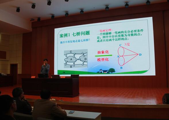 为拓展学生视野,活跃校园学术氛围,4月1日下午,应数学学院邀请,深圳大学张文俊教授在逸夫楼多功能厅作了一场题为“数学的魅力”的专题报告会。数学学院党委书记柳士刚,院长胡余旺,党委副书记何永等与400余名学子共同聆听了报告会。报告会由胡余旺教授主持。