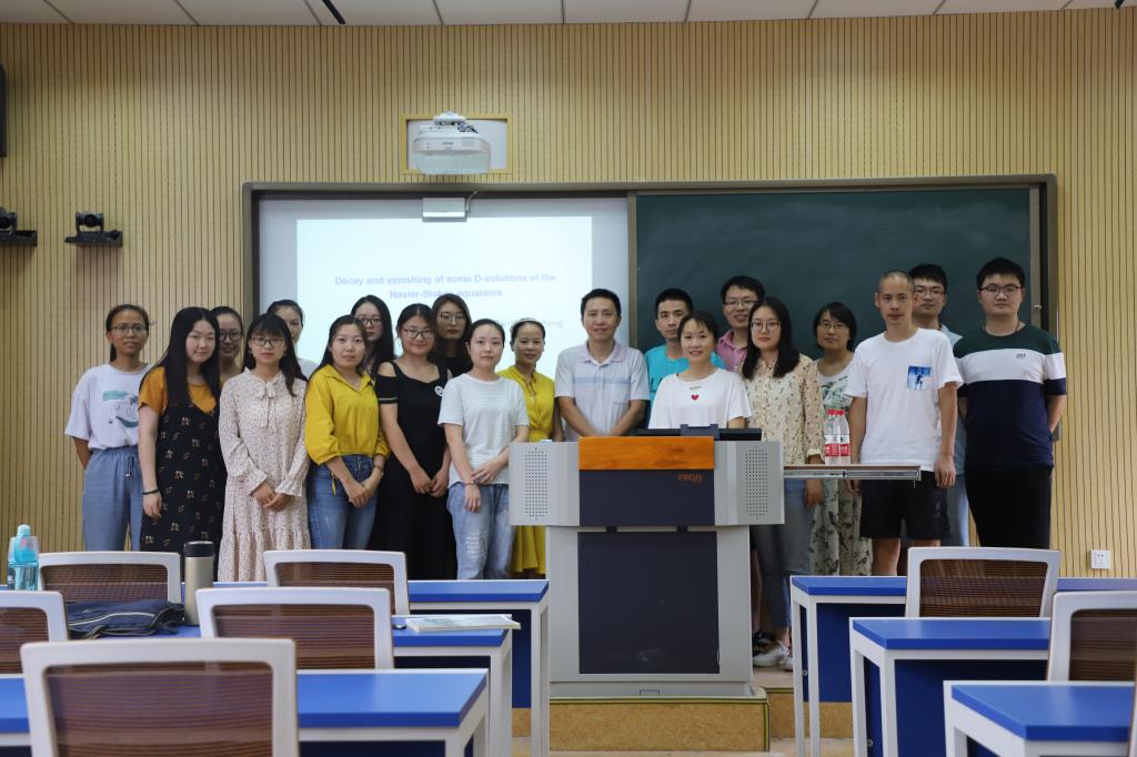 2019年9月2日-11日,应信阳师范学院加勒逼 邀请,美国加州大学河湾分校张旗教授在加勒逼 507教室作了“偏微分方程基本理论简介”的系列学术报告。报告由加勒逼 副院长蔡礼明教授主持,偏微分方程科研团队全体成员和部分研究生聆听了此次报告。