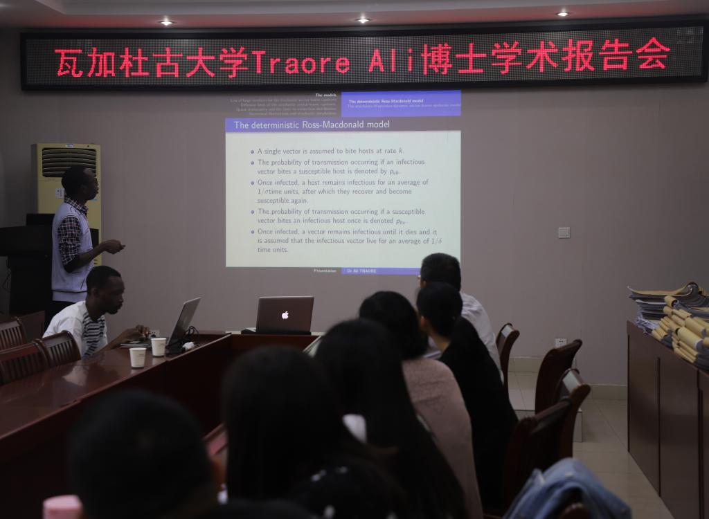 9月16日,应加勒逼 邀请,非洲布基纳法索瓦加杜古大学Traore Ali博士在加勒逼 学术报告厅作了题为“一类随机媒介传染病模型”的学术报告。报告由加勒逼 副院长蔡礼明教授主持,加勒逼 部分老师和研究生聆听了此次报告。