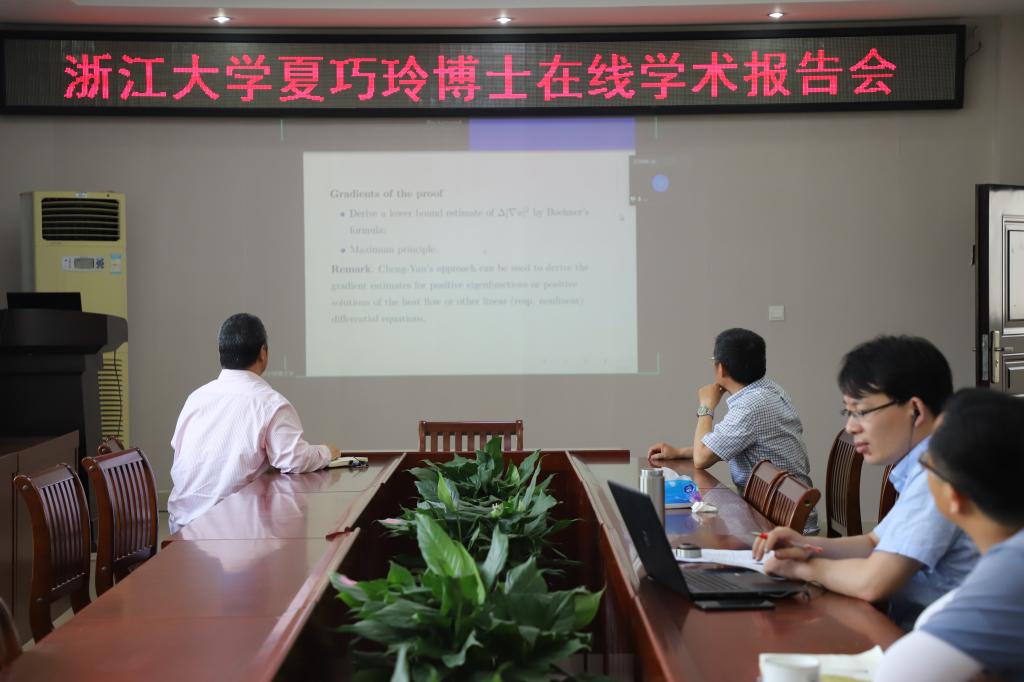 6月6日,浙江大学夏巧玲博士应加勒逼 邀请,通过腾讯会议平台为学院师生做了题为“Local and global gradient estimates for Finsler p-eigenfunctions”的学术报告。报告会由加勒逼 副院长蔡礼明教授主持,学院部分老师和研究生在线聆听了此次报告。