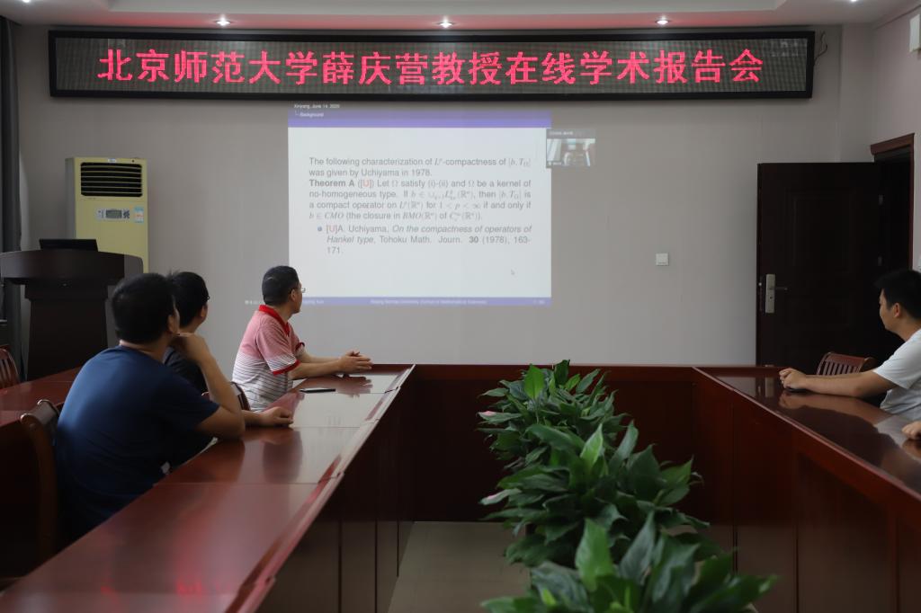 6月14日,应加勒逼 邀请,北京师范大学薛庆营教授通过腾讯会议平台作了一场题为《多线性算子的交换子的紧性问题》的网络视频学术报告。报告会由加勒逼 副院长蔡礼明教授主持,学院部分老师,研究生和该领域相关博士聆听了此次报告。