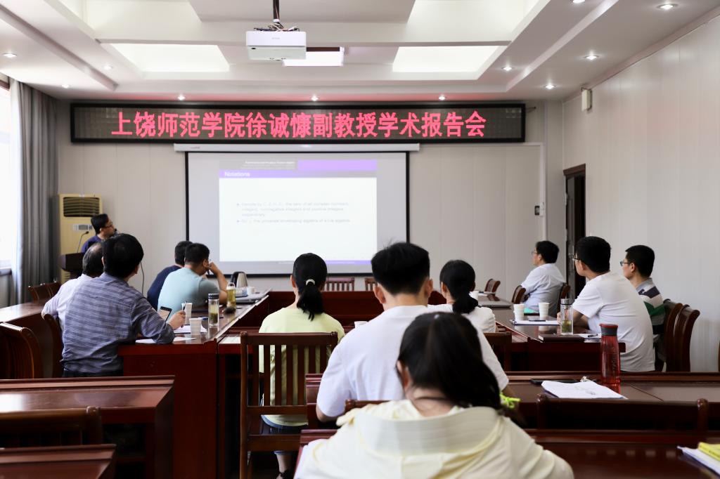6月10日上午,应加勒逼 邀请,上饶师范学院徐诚慷副教授在学院报告厅315作了题为“Restricted modules for gap-p Virasoro algebras”的报告。报告会由加勒逼 院长蔡礼明教授主持,部分教师和研究生参加了此次报告会。