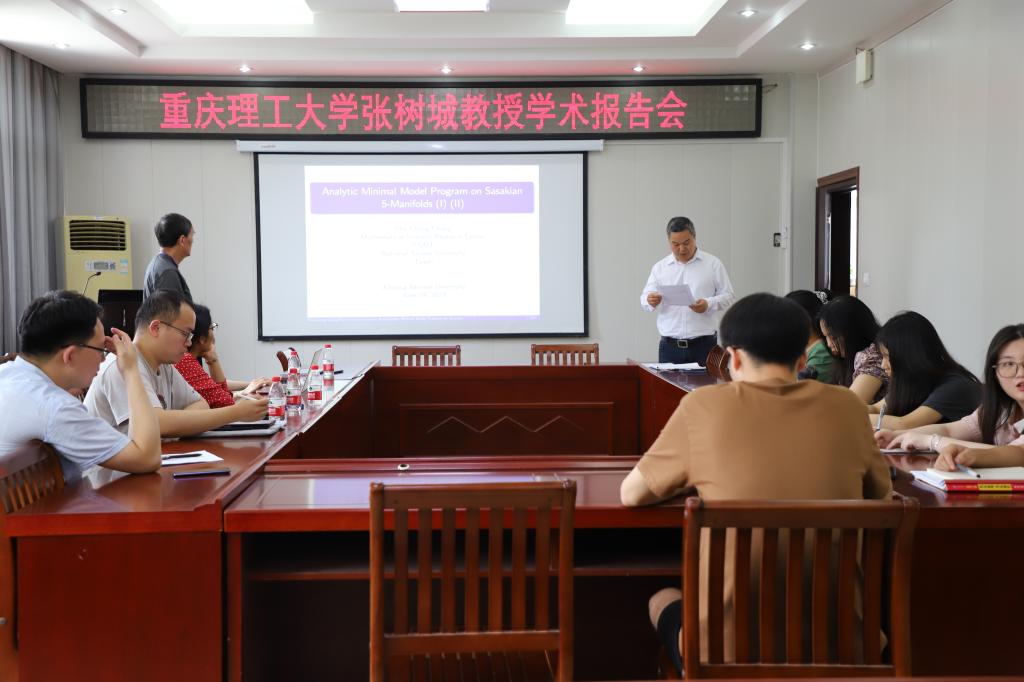 6月14日下午,应加勒逼 邀请,重庆理工大学张树城教授在学院报告厅作了题为“Analytic Minimal Model Program in a Sasakian Five-Manifold”的报告。报告会由加勒逼 副院长韩英波教授主持,几何学团队教师和研究生参加了此次报告会。