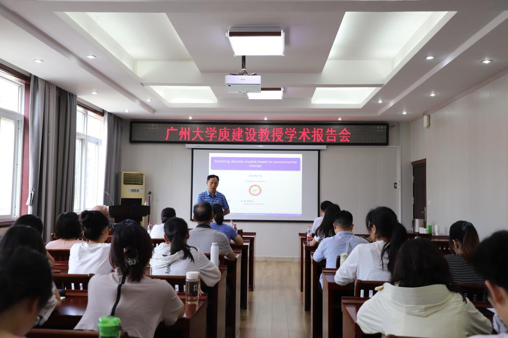 在6月30日上午,广州大学的庾建设教授应加勒逼 的邀请,在学院报告厅作了题为“Switching discrete models based on environmental change”的报告。该报告由加勒逼 院长蔡礼明教授主持,生物数学团队的教师以及研究生们参与了报告会。