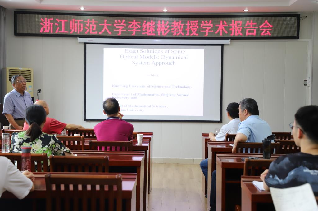 7月3日,应加勒逼 邀请,浙江师范大学李继彬教授在学院报告厅315会议室作学术报告。报告会由加勒逼 院长蔡礼明教授主持,动力系统方向的教师以及研究生们聆听了报告。