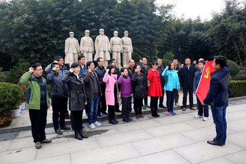 在学院党委书记王娟的带领下,全体教工党员怀着无限敬仰的心情,参观了竹沟革命纪念馆展厅,目睹那一幅幅珍贵的图片、一件件当时所使用的实物,使大家仿佛又回到了那血雨腥风、炮火连天的岁月。参观完展厅后,大家又参观了革命旧址,历经岁月磨砺的老式建筑,仿佛在无声地诉说那战火纷飞的峥嵘岁月,大家又一次受到心灵的震撼和洗礼。在纪念馆塑像前,全体教工党员面对鲜红的党旗,举行庄严的宣誓仪式重温入党誓词。党员们高举右拳头,面对党旗,庄严宣誓,重温入党时刻的激动心情和自己对党忠诚的誓言。