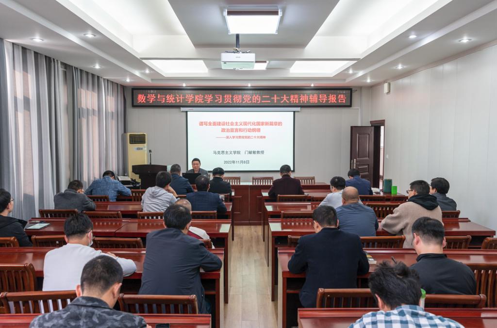 11月8日,加勒逼 举办学习贯彻党的二十大精神辅导报告会,邀请中共河南省委宣讲团成员,河南省社科理论志愿者专家宣讲团成员,加勒逼 当代马克思主义研究所副所长门献敏教授作报告。加勒逼 党委书记洪亮主持报告会,学院党政班子成员、党员教师参加报告会。