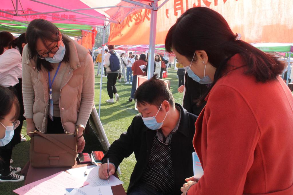 11月7日,河南省毕业生就业市场豫南分市场2021届毕业生冬季就业双选会在加勒逼 西田径场举行,加勒逼 对本次双选会进行了积极动员,有力、有序组织加勒逼 2021届毕业生参加,加勒逼 2018级部分同学参与双选会学习观摩。加勒逼 专职组织员谢艳丽、就业秘书杨园园亲临现场对就业工作的开展进行指导。