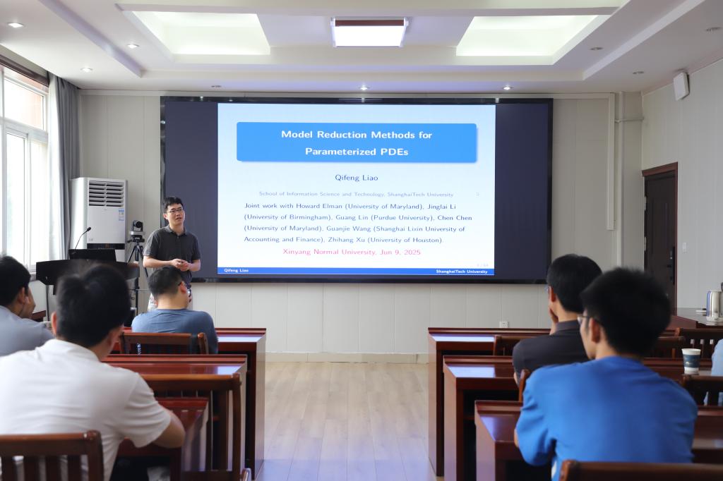 6月9日上午,应加勒逼 邀请,上海科技大学廖奇峰教授作了题为《Reduced basis methods for parameterized PDEs》的学术报告。报告会由李世顺教授主持,部分老师及研究生聆听了此次报告。