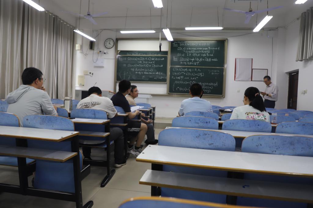 会上,景乃桓教授在报告中首先介绍了广义 Heisenberg-Virasoro 代数的研究背景,该代数作为数学物理中的重要结构,在量子场论与共形场论的对称性描述中具有关键意义。随后,他围绕团队在该领域的最新成果展开阐述:针对秩二广义 Heisenberg-Virasoro 代数,构造了一族不可约模,完整确定了其同构类,并证明这些模覆盖了所有在 Cartan 子代数上秩为 1 的自由模。报告结束后,景乃桓教授与在场师生就广义 Virasoro 代数表示理论的研究方法、非权模与物理模型的关联等问题展开热烈讨论。(赵跃强供稿,严辉银审核,韩英波终审)