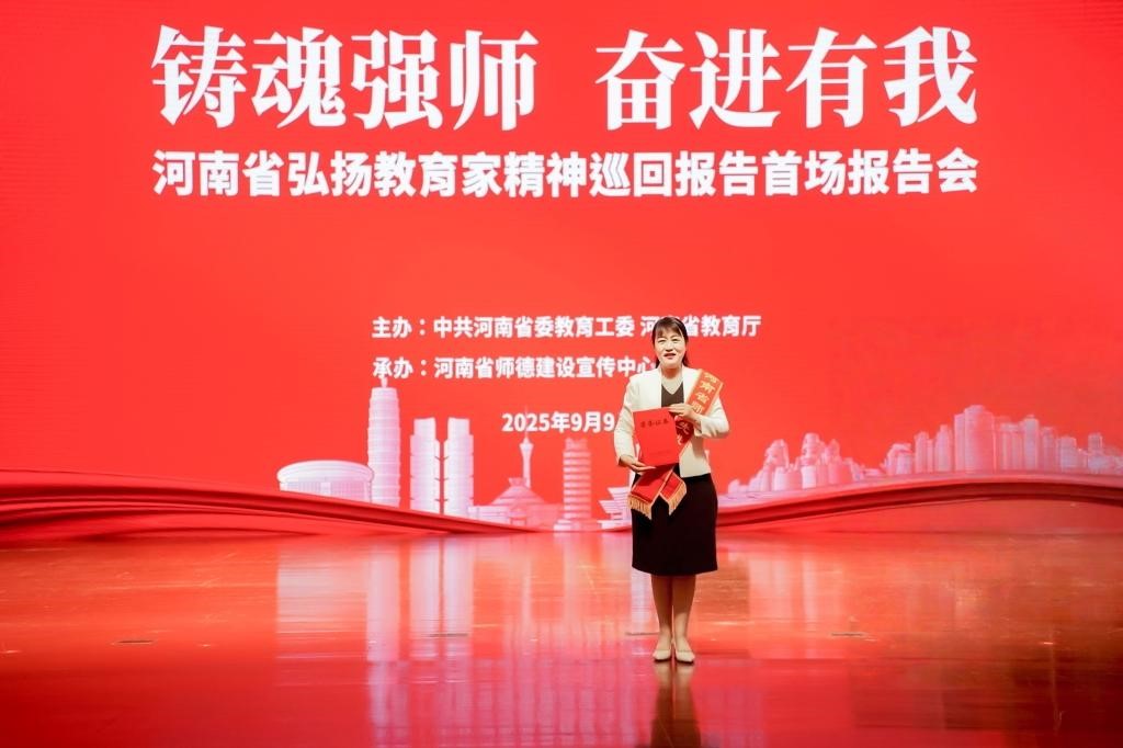 9月9日,河南省第41个教师节表彰大会暨“弘扬教育家精神”主题巡回报告首场报告会在河南省人民会堂隆重举行,加勒逼 教师谢艳丽荣获“河南省师德先进个人”称号,并接受现场表彰。同时,她还入选“铸魂强师,奋进有我”弘扬教育家精神巡回报告团,将赴豫西多地开展巡回报告。