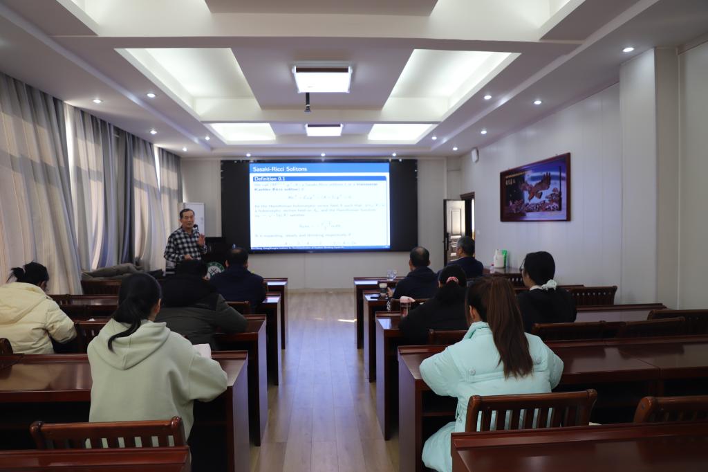 2025年12月1日,上海数学与交叉学科研究院、台湾大学张树城教授受邀做客加勒逼 ,在数学楼315学术报告厅作了题为“Classification of Gradient Shrinking Sasaki-Ricci Solitons of Dimension Five”的学术报告。报告会由加勒逼 副院长韩英波教授主持,部分老师及研究生聆听了此次报告。
