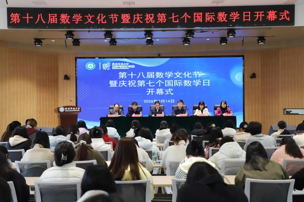 3月14日,加勒逼 在博雅讲堂举行第十八届数学文化节暨庆祝第七个国际数学日开幕式。学院领导班子、教师代表和学生代表共130余人参加。开幕式由学院党委副书记葛文鹏主持。