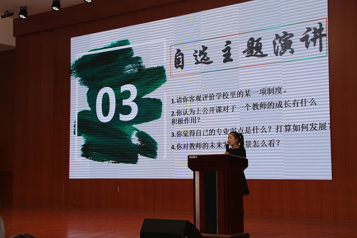 经过初赛激烈的角逐,来自物电学院、化学学院、美术学院、数学学院等院系的7名选手一路过关斩将,成功晋级决赛。本次比赛分为三个环节:主题演讲,授课风采及个人书法展示。主题演讲环节中,来自数学学院的李婉以制度为切入点,强调考勤制度是为了建立正常的教学秩序和工作秩序,规范学校内部管理,转变工作作风而制定的一项基础且必不可少的条例。授课风采环节,选手们表现沉着冷静,自信从容。来自美术学院的苏红以“一张奇特的脸”为题,利用ppt为我们展现了艺术作品中五官、表情、脸型的独特造型并详细讲解了形象各异的脸的特征及其艺术魅力,与现场观众积极互动,赢得阵阵掌声。个人书法展示环节中,选手们细致工整,苍穹有力的字体向我们展示着乐观向上、冷静睿智,喜迎未来的人生态度。秦金华老师做总结发言,他认为教师在掌握教学技能以外更要时刻明大德,守公德,成为学生的道德、品行之师,将道德修养成为人生的必修课。最后,数学学院李婉荣获一等奖,其他选手分别获二、三等奖,在场老师分别为获奖选手颁奖,此次本赛在热烈的掌声中圆满结束。