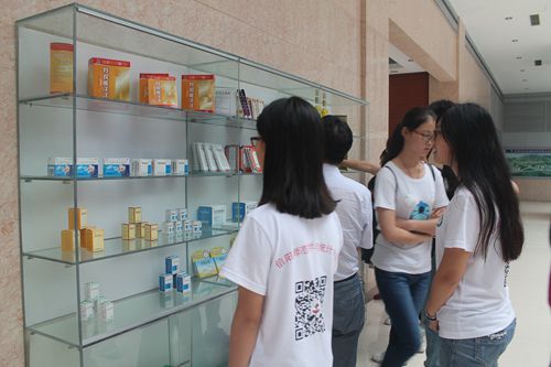 大学生们首先来到羚锐制药公司总部,在公司讲解人员的带领下,志愿者们参观了羚锐制药的展览馆,通过聆听和观看,大学生志愿者们了解到羚锐集团在贫困大别山区艰苦创业的历史事迹,纷纷表示很受教育和启发。据了解,羚锐制药集团作为一个靠扶贫创立的本土企业,通过十余年的不懈努力和创新发展,已跻身全国中药系统先进企业行列,是我国橡胶膏剂药业第一品牌。志愿者在引导员的带领下,随后参观了芬太尼透皮贴剂生产基地和经皮给药制剂陈列馆等羚锐集团的两个分公司。在芬太尼透皮贴剂生产基地和经皮给药制剂陈列馆中,引导员为志愿者们详细介绍了羚锐新县生态工业园区的建设状况及药物研发的历程。馆中陈列的原辅料标本、中药材标本、传统医药器具等众多展品引起了志愿者们的兴趣,学生们谦虚地向工作人员请教相关问题。