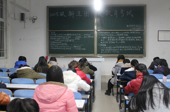 为加强广大共青团员对团章的理解,进一步明确其作为党组织后备军所肩负的责任和义务,12月8日晚,数学学院分别在数学楼101、102、103、104、201多个教室成功开展新生团章教育考试,该院2015级全体团员参加了此次考试。