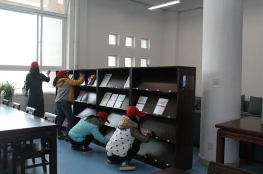 此次活动的主要任务为打扫图书馆卫生及整理图书。志愿者们分成两组并分配任务,大家分工明确,干劲十足,不放过任何一个角落。志愿者们在劳动中感受着奉献的乐趣,整个活动呈现出一派热火朝天的景象。活动结束后,志愿者们在图书馆前合影留念。