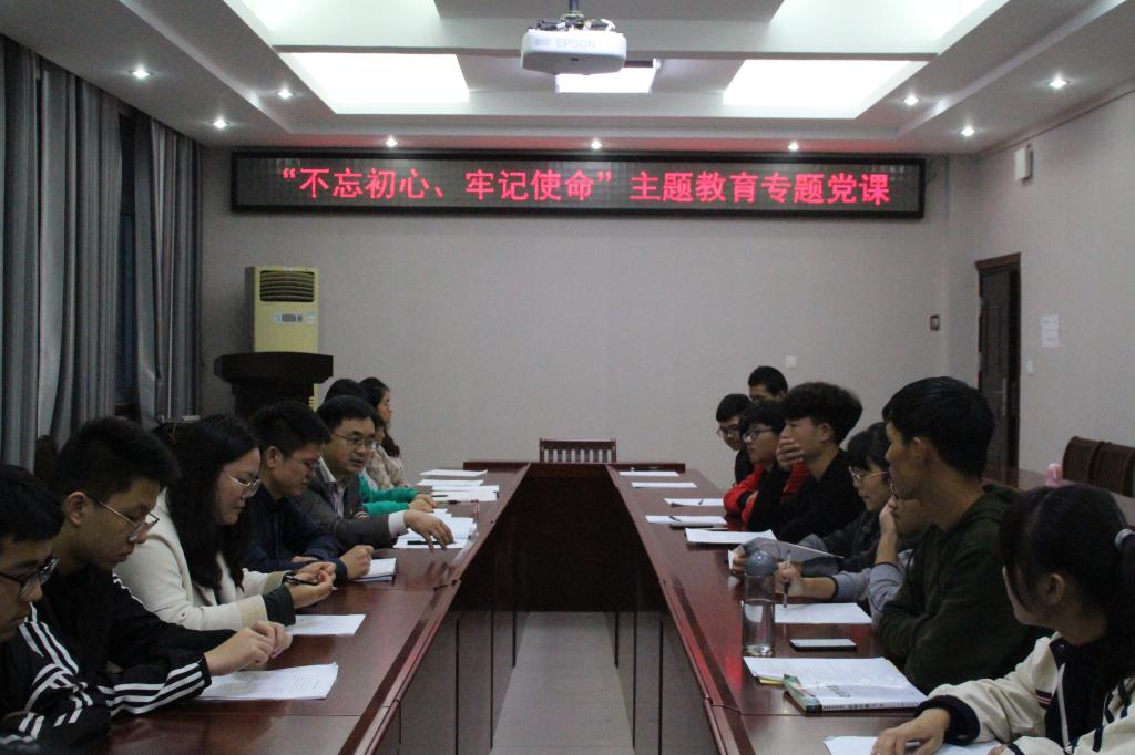 为认真贯彻习近平总书记在“不忘初心,牢记使命”重要讲话精神,10月10日,加勒逼 在数学楼315会议室组织举行了题为“鉴往知来守初心 砥砺奋进担使命”的“不忘初心、牢记使命”的主题教育专题党课,本次党课主讲为党委副书记洪亮,学生党员代表参加了本次党课。