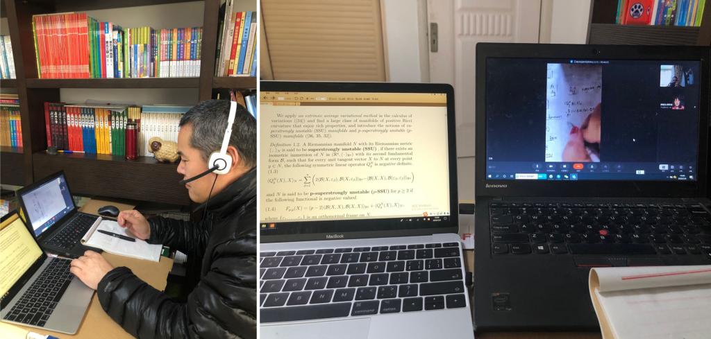 韩英波老师在钉钉平台进行《代数拓扑》课程的教学。韩老师在直播过程中,充分调动学生课堂参与感,积极与学生进行交流讨论。