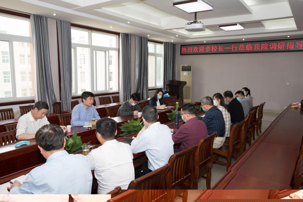 5月15日下午,副校长余本海教授与教学评估中心主任赵万鹏、教务处副处长范小伟等一行五人来加勒逼 调研指导工作,调研会议在学院会议室举行,学院领导班子成员参加了会议。