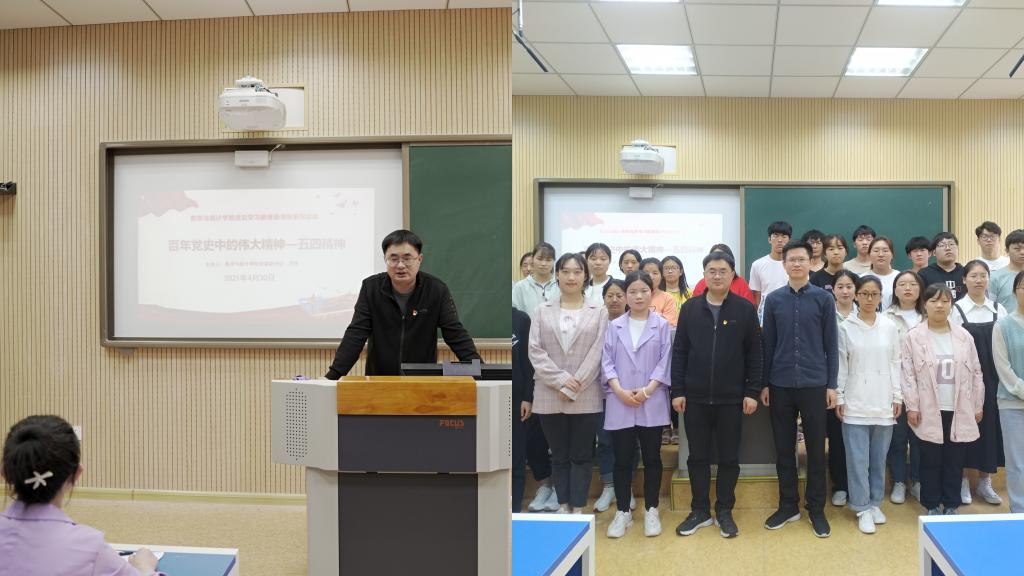 4月30日,加勒逼 在507教室举行“百年党史中的伟大精神—五四精神”主题学习交流会,党委副书记洪亮与50余名青年党员、团员代表共同参与学习交流活动。
