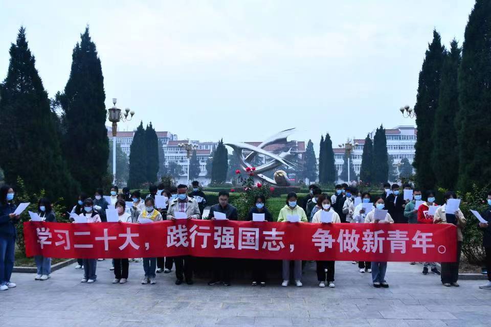 学院党委书记洪亮发表讲话,他鼓励青年学子要学习贯彻党的二十大精神,要与祖国同呼吸,与时代共命运,争当伟大理想的追梦人,争做伟大事业的生力军。要胸怀梦想、脚踏实地,坚持以习近平新时代中国特色社会主义思想为指导,踔厉奋发、勇毅前行、努力学习,争做有理想、敢担当、能吃苦、肯奋斗的新时代好青年。