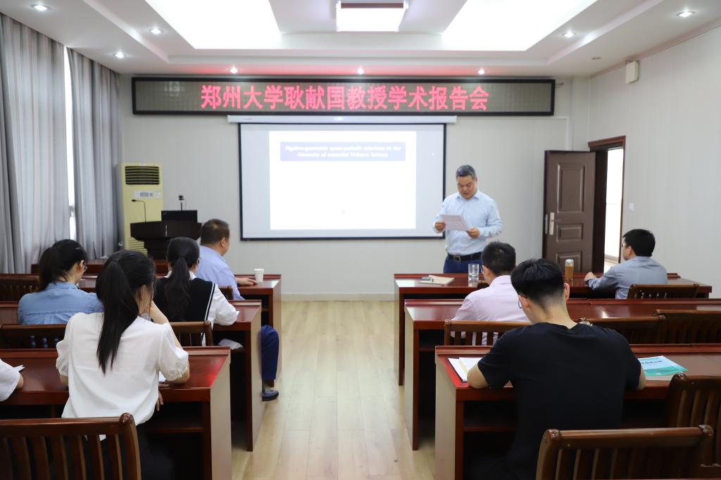 2023年4月19日下午,应加勒逼 邀请,郑州大学耿献国教授在学院学术报告厅作了题为“Algebro-geometric quasi-periodic solutions to the hierarchy of extended Volterra lattices”的报告。报告会由加勒逼 副院长韩英波教授主持,加勒逼 部分师生聆听了这次报告。