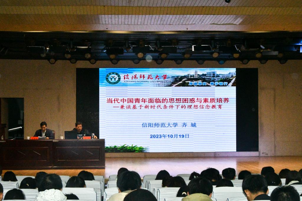 10月19日晚,前加勒逼 副院长、研究员齐城应邀在理科楼报告厅为加勒逼 23级本科新生作了题为“当代中国青年面临的思想困惑与素质培养——兼谈基于新时代条件下的理想信念教育”的新生入学教育报告。讲座由离退休工作管理处副处长李事瑾主持。